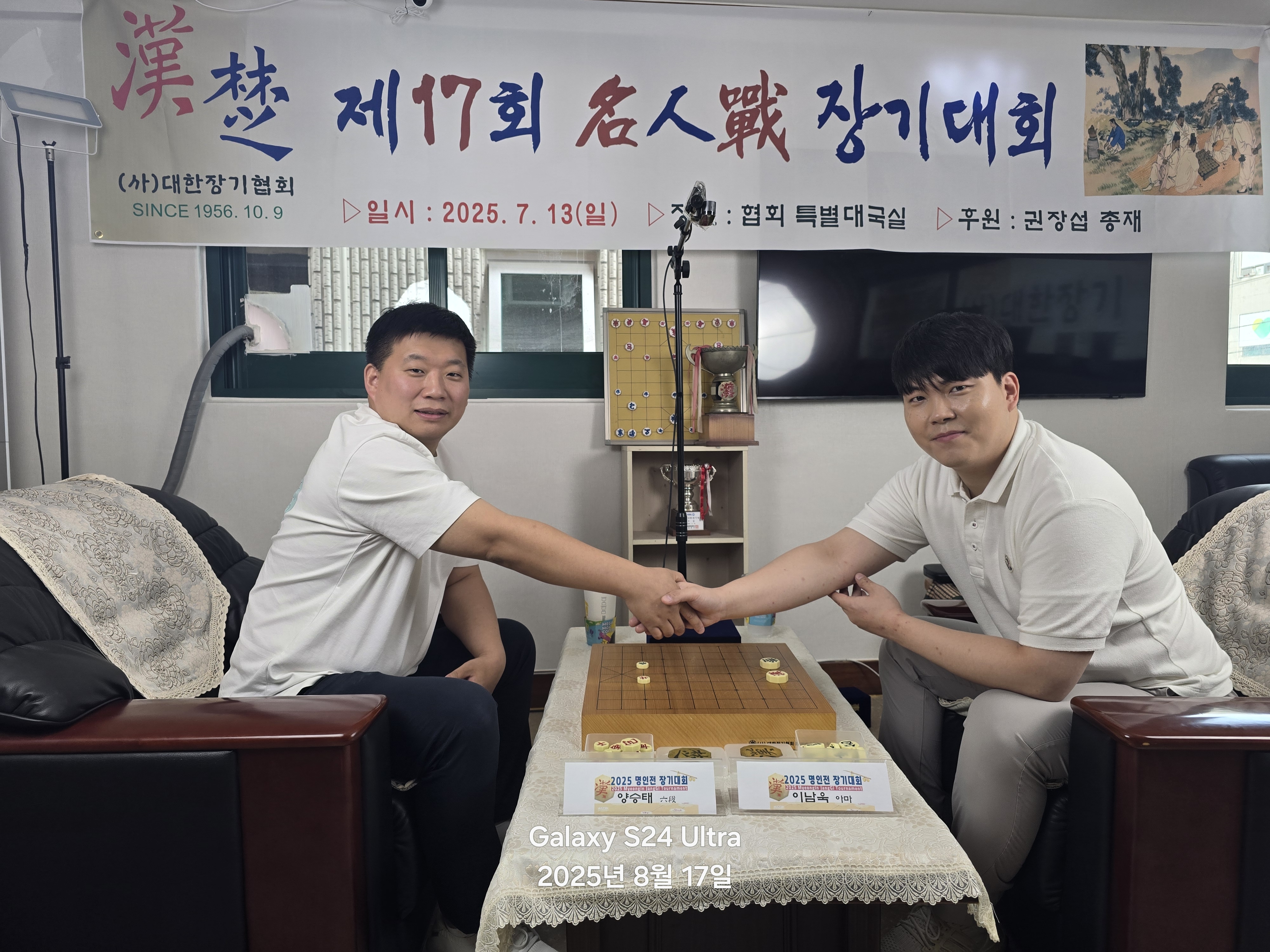 µÎ °ÅÀåÀÇ À̸§ÀÌ ´Ù½Ã ÇÑ ¹ø, ¿î¸íÀ» °Ç Àå±âÆÇ À§¿¡¼ ¸Â¼·´Ï´Ù.